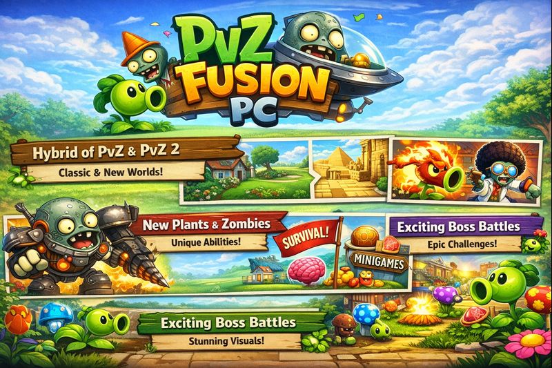 PvZ Fusion PC refers to playing the PvZ Fusion version of Plants vs Zombies on a Windows computer. It is not an official PC release but a PC-playable version that runs smoothly using optimized setups.